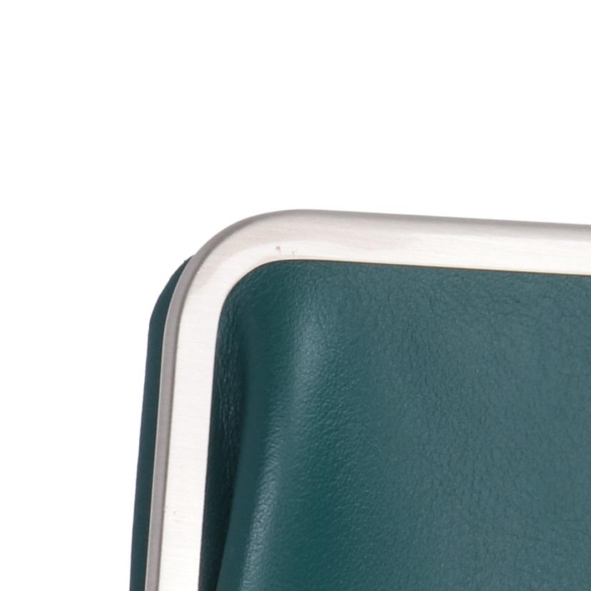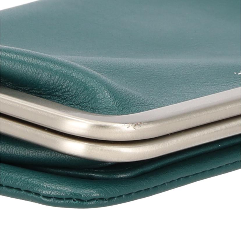 | 状態詳細 | 触り心地の良いソフトレザーを使用したがま口デザイン。全体的に使用感が少なく、綺麗な状態ですが、金口正面右上に打痕キズ、左上に細かいキズがあります。 サイズ:幅(W)約15.5cm、高さ(H)約10cm(留め具込み 約11.5cm)、奥行(D)約3cm/カラー:グリーン 仕様:札入れ×2、小銭入れ×1、カード入れ×8、フリーポケット×3 |