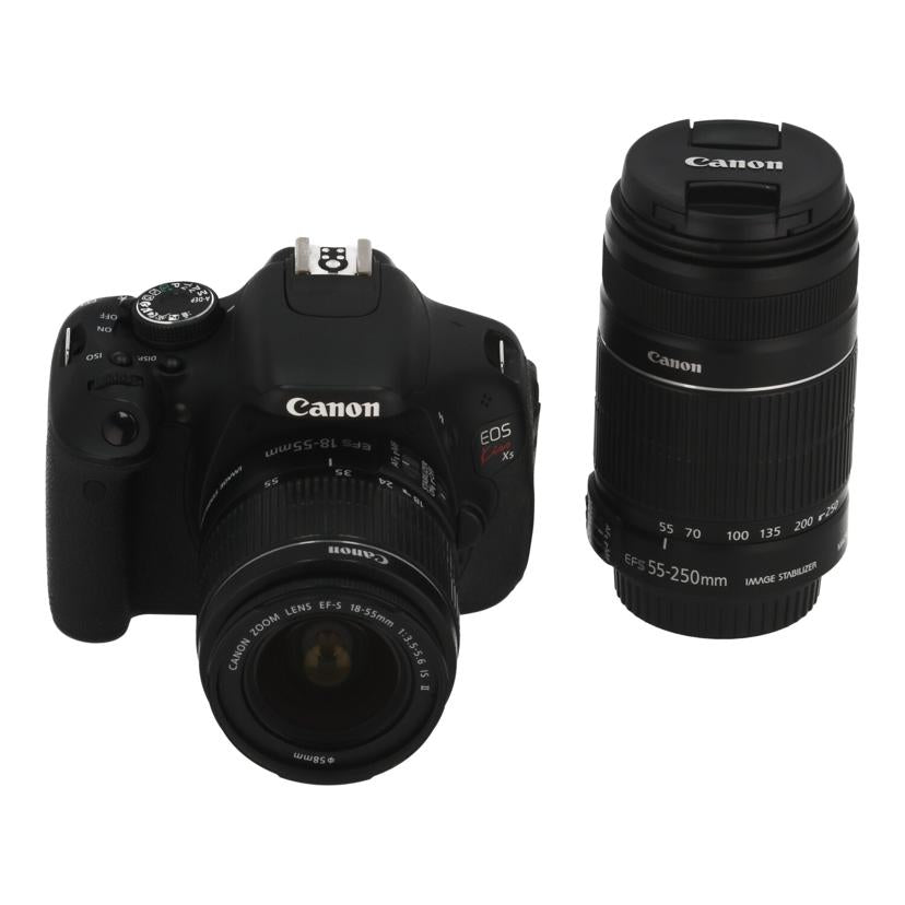 | 状態詳細 | EF-S18-55mm F3.5-5.6 IS II/EF-S55-250mm F4-5.6 IS II付属 APS-Cセンサー有効1800万画素 9点AF フルHD動画撮影30fps SDXCカード対応 充電器欠品 |
