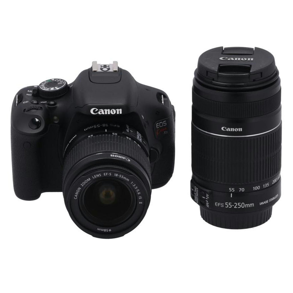 EF-S18-55mm F3.5-5.6 IS II/EF-S55-250mm F4-5.6 IS II付属 APS-Cセンサー有効1800万画素 9点AF フルHD動画撮影30fps SDXCカード対応 社外品バッテリー/充電器付属