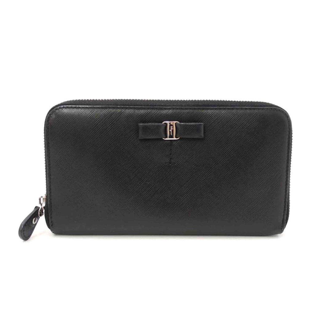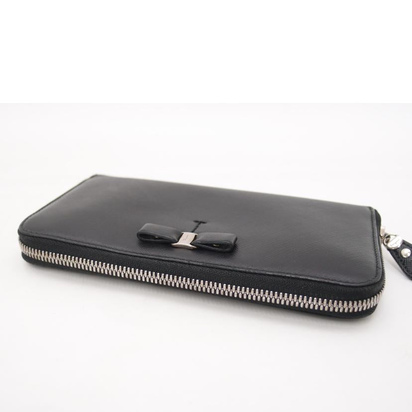 Ferragamo フェラガモ/ヴァラリボンラウンドファスナー長財布/ブラック/22B044//Aランク/69