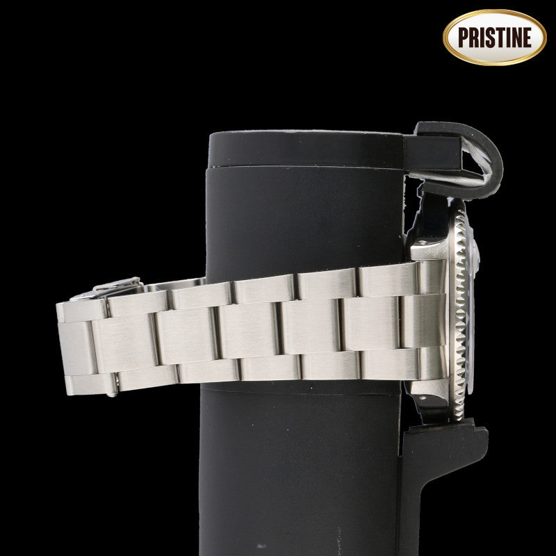 | 状態詳細 | Pristine Condition~新品では入手困難ですが、本体、ベルト共に非常に良い状態で、オリジナルの形状や仕様が新品同様に保たれています。1999年頃製造 【外装】当社指定工房にて2026年1月外装新品仕上済み。ケース径40mm。腕周り約18cm。【精度】弊社指定時計工房にて2025年2月オーバーホール済。日差±10秒以内、正常動作しております。 【付属品】外箱、内箱、保証書、ベゼルカバー |